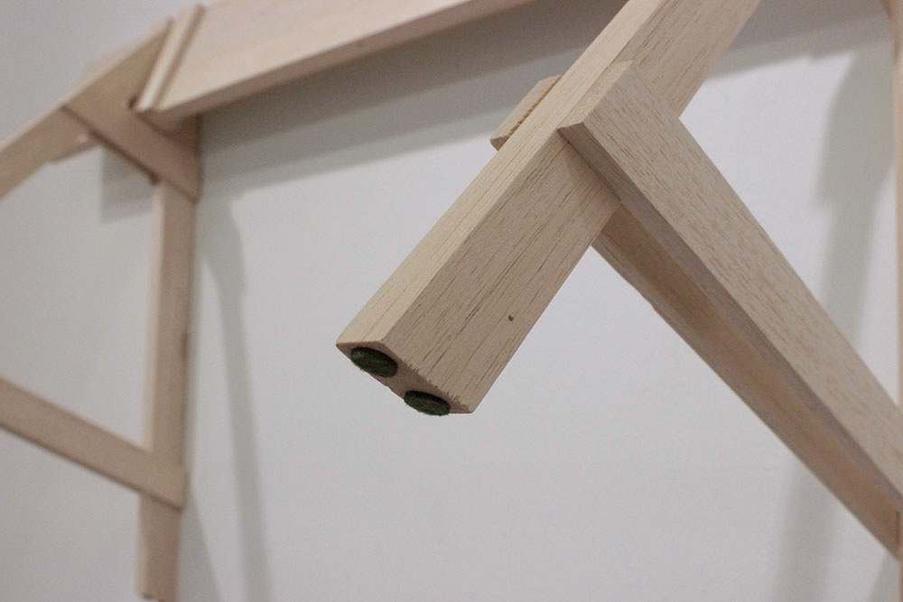 Rendered at 1⁄4 scale in balsa wood, Barricade is too slight to hold anything back but too large to assimilate into a “model” scene. Hung on the wall in a gesture that might further distance it from any imagined function, the piece still encourages a viewer to keep their distance, performing a kind of material drag. The work marksa a division between one strategy of representation and another, shifting away from spectacular hyper-visibility to a charged absence.